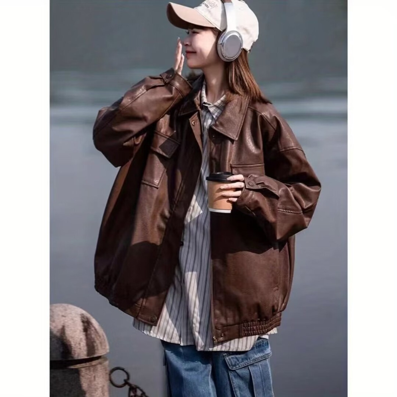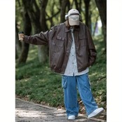 トレンド感満載の2Way襟付きオーバーサイズフェイクレザーブルゾンが登場!
