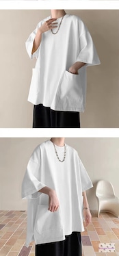 #メンズTシャツ #半袖Tシャツ #ビッグTシャツ #ロング丈Tシャツ #ポケット付きTシャツ #無地Tシャツ #カジュアルシャツ #大きいサイズ #男女兼用 #夏ファッション #アントクロス #パッチワークTシャツ #スプライシング #プルオーバー