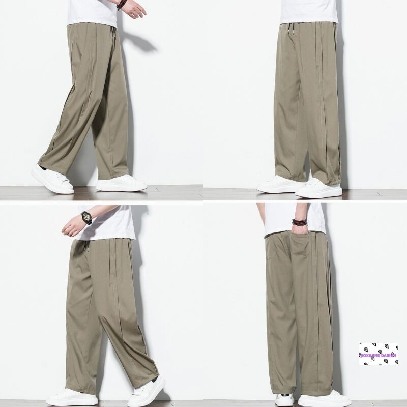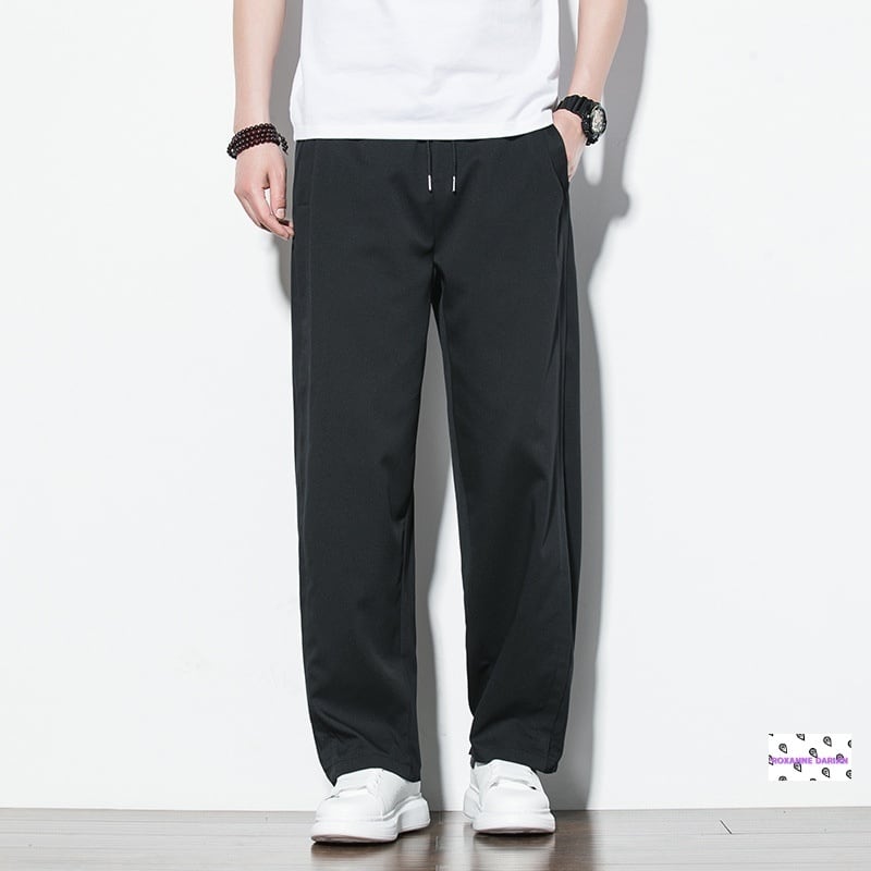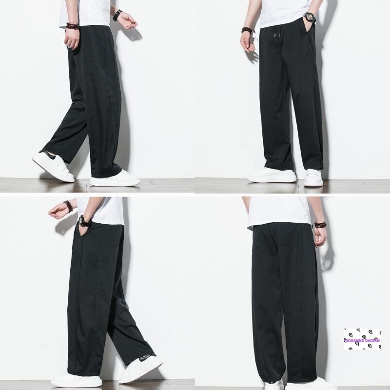 夏用メンズゆったりワイドパンツ|涼しいストレートイージーパンツ 無地3色(黒・グレー・カーキ)大きいサイズM〜5XL対応 オフィスカジュアルにも使える快適ボトムス