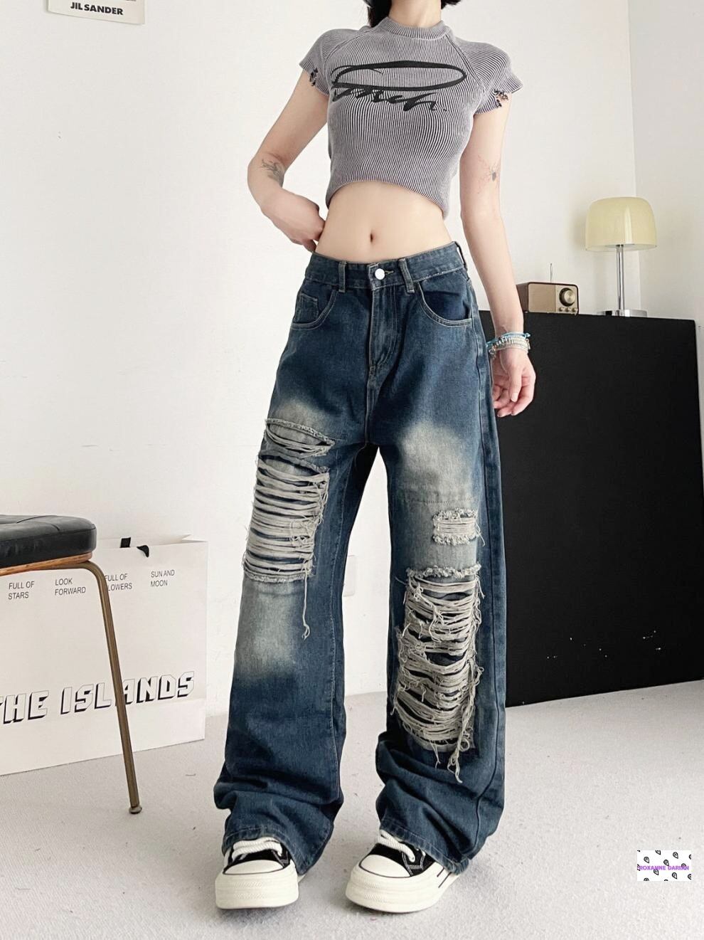 ダメージデニムならではの存在感と、ワイドパンツの抜け感を兼ね備えた、春秋の主役級ボトム。一本持っておくだけでコーデの幅が広がる、トレンド感たっぷりのアイテムです。