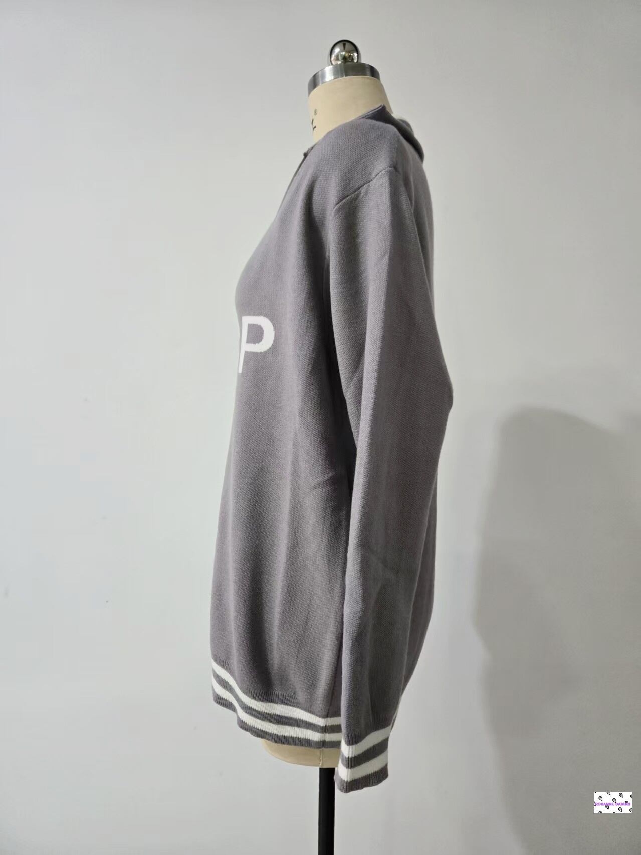 秋冬コーデに取り入れやすい、レタープリントが印象的なVネックニットトップス。流れるようなレターデザインがシンプルなニットに表情を与え、カジュアルながらもどこかエレガントな雰囲気を演出します。ゆったりとしたレギュラースタイルで、着丈は50〜65cmの間に収まる絶妙なバランス。パンツにもスカートにも合わせやすく、デイリーに使える万能アイテムです。