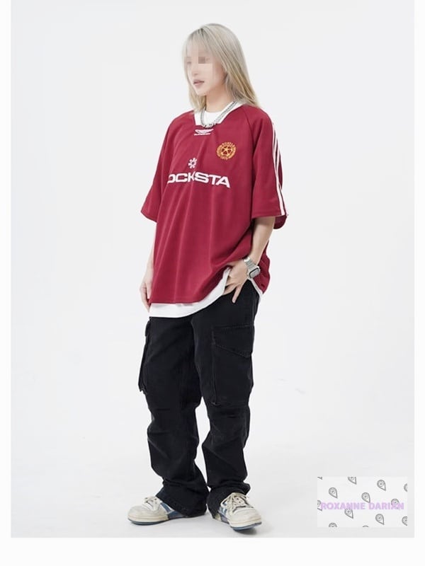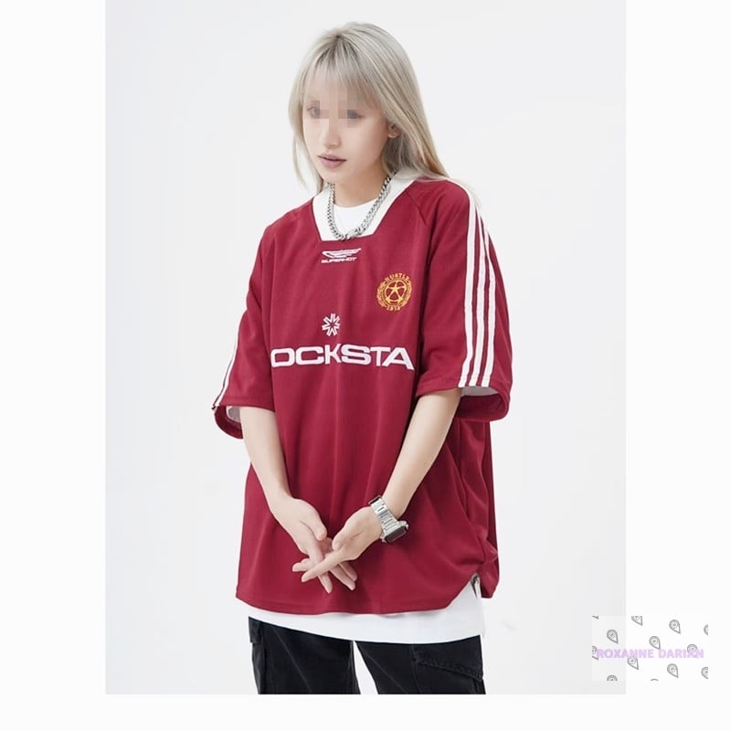 海外で人気のストリートスタイルTシャツ。メッシュ素材にレター刺繍を施したVネックデザインで、通気性が良く夏でも快適に着られます。ゆったりとしたシルエットで男女兼用、ヒップホップや韓国系ファッションにもぴったり。軽量なポリエステル素材で速乾性があり、普段使いからダンス・スポーツまで幅広く活躍します。M〜XXLのサイズ展開で体型を選ばず着用可能。ブラックとレッドの2色展開。