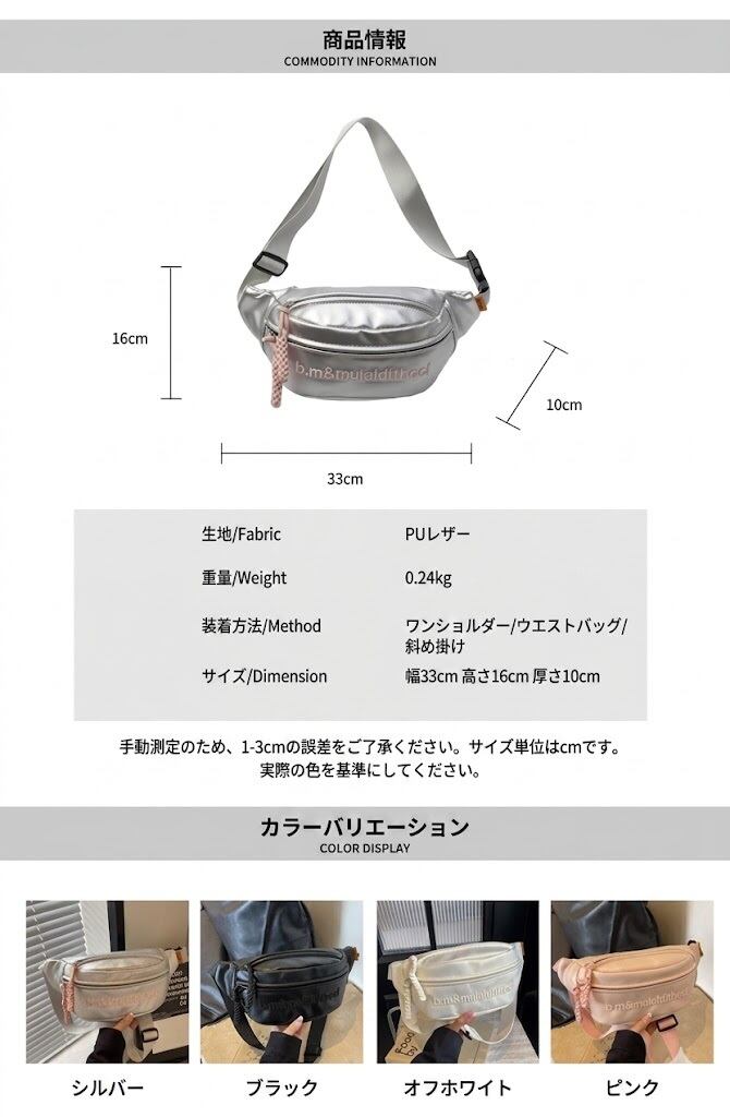 カラー: シルバー / ブラック / ベージュ / ピンク
