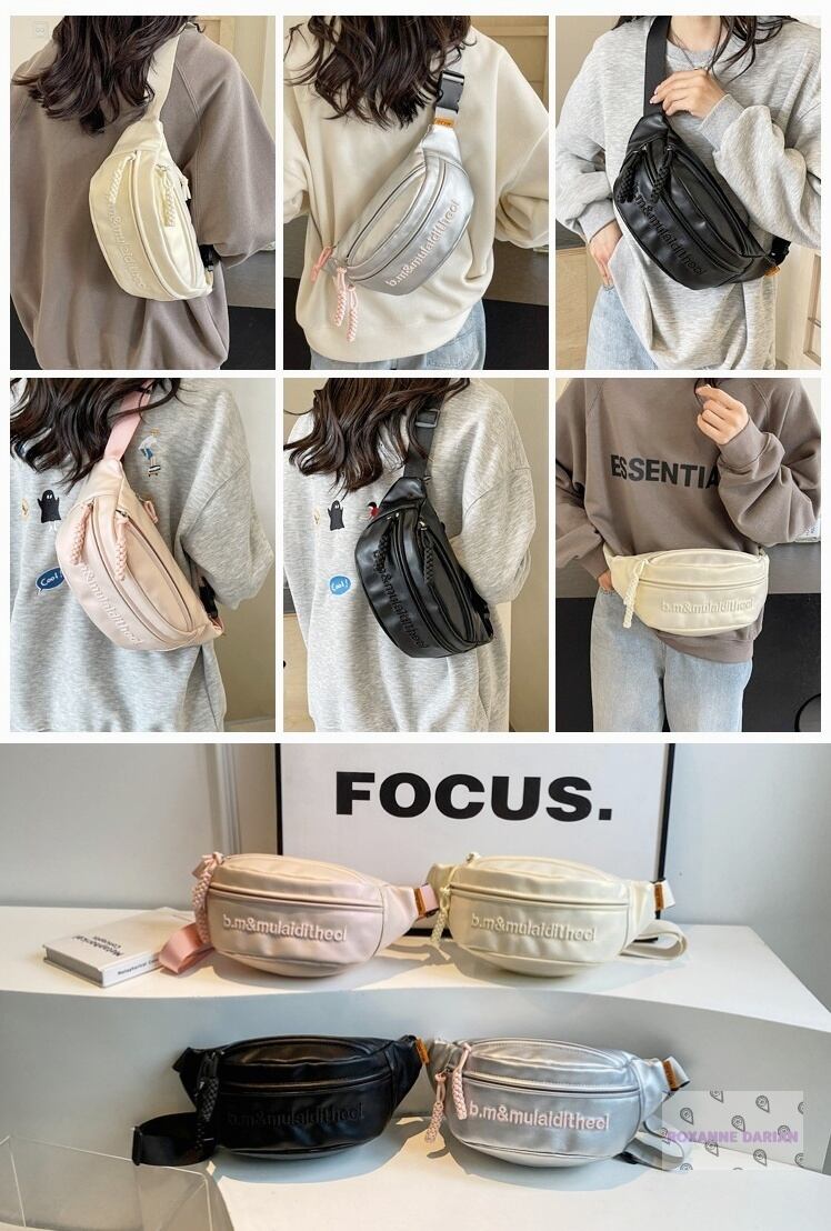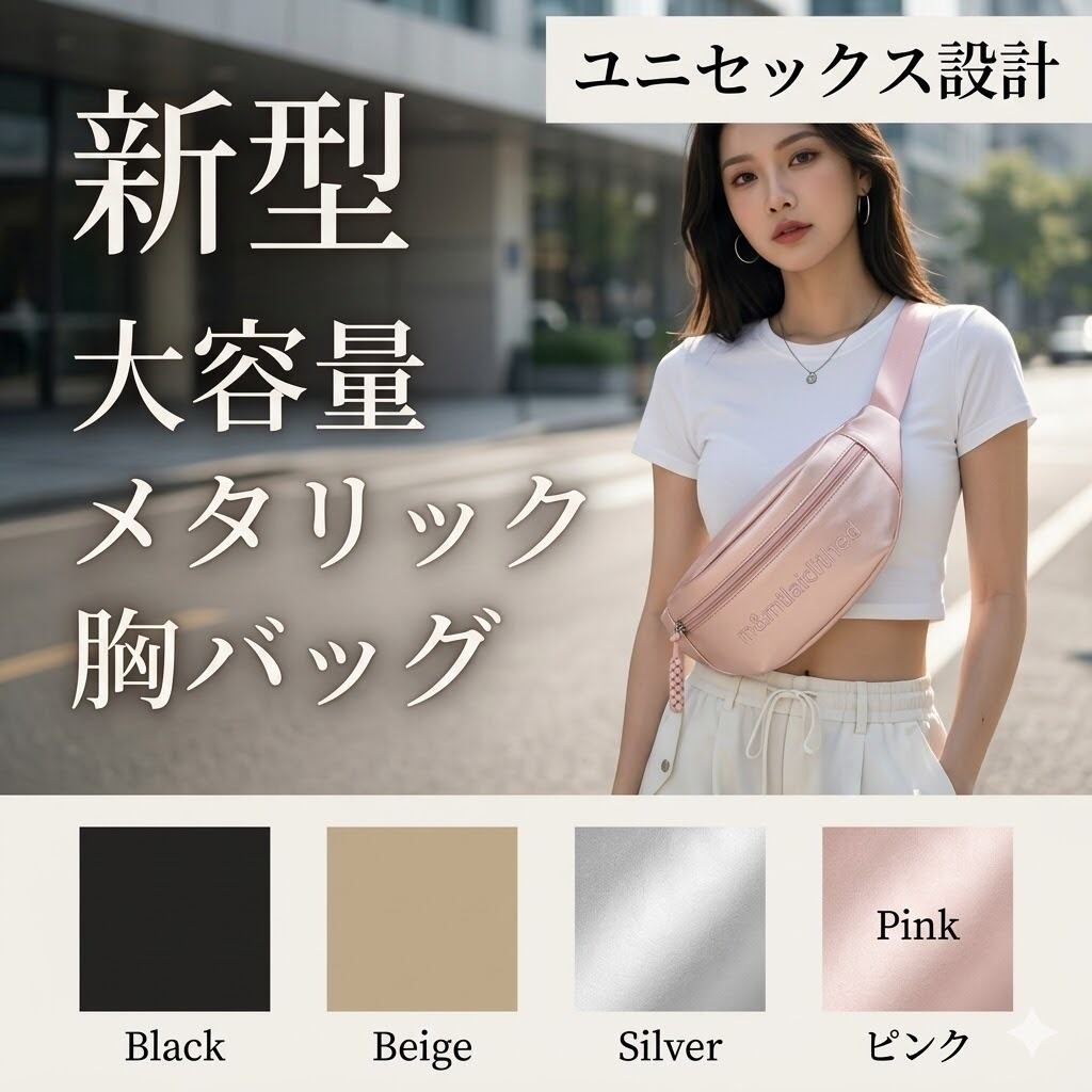 大容量 メタリック ショルダーバッグ レディース メンズ 斜めがけ 胸バッグ ボディバッグ 高級感 ins人気 韓国 ファッション カジュアル 軽量 ポリエステル シルバー ベージュ ピンク ブラック