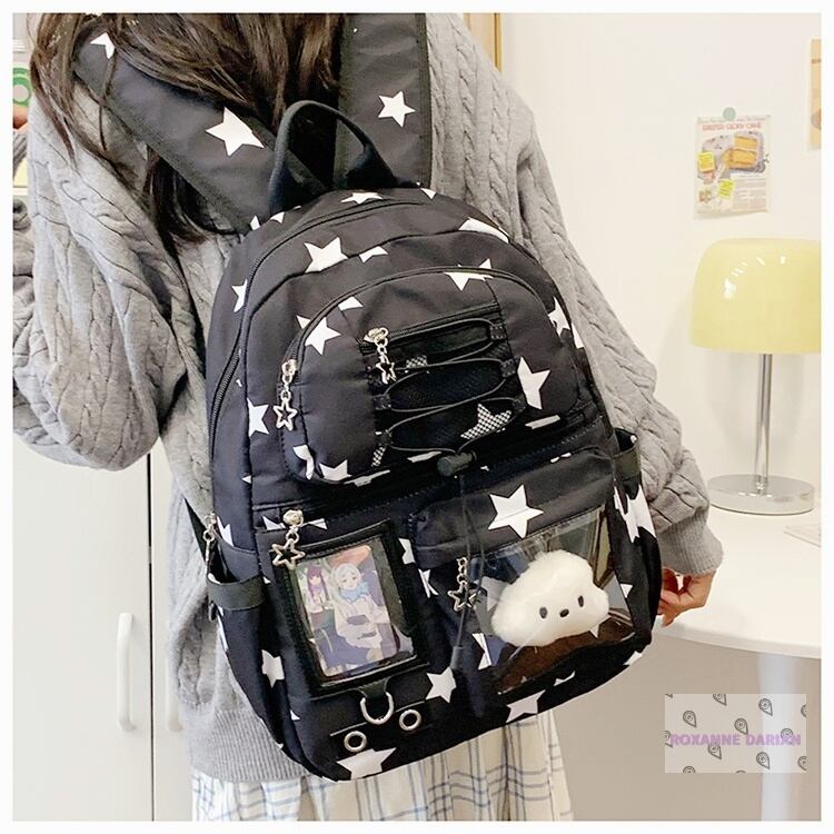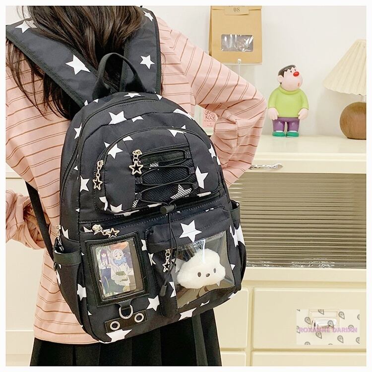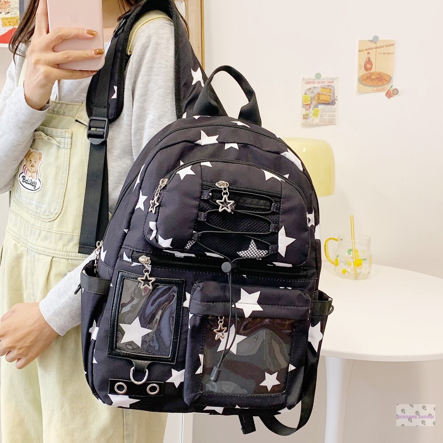 日本風のフレッシュでキュートなデザインが魅力の、星柄大容量バックパック。