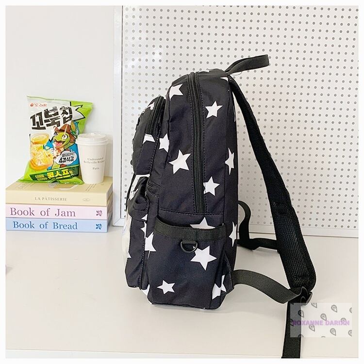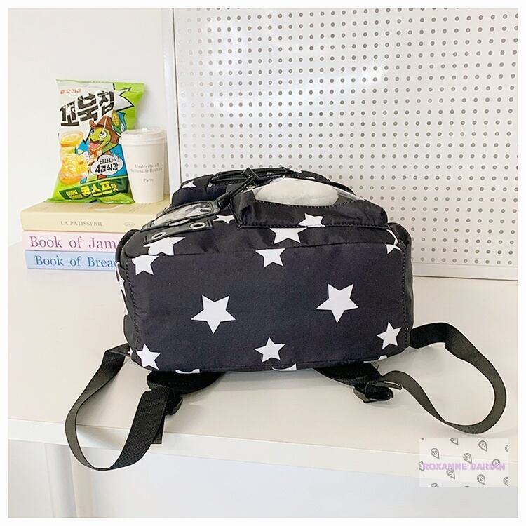 甘すぎないブラックカラーに散りばめられたスタープリントが、毎日の通学やお出かけを楽しく彩ります。