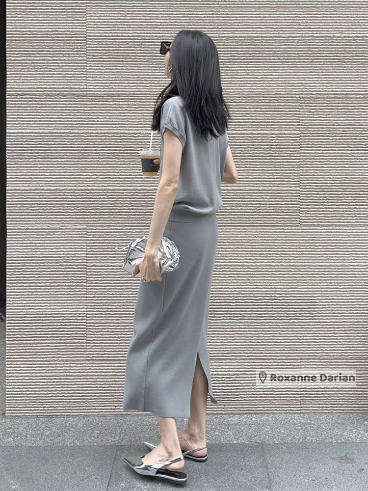 レディースセットアップ グレーセットアップ ロングスカートセットアップ 上品カジュアルコーデ 女性用リラックスウェア 大人女性ファッション ポケット付きロングスカート カジュアルセットアップ 女子会ファッション 楽ちんウェア S〜XLレディース服 上品ファッション 大人カジュアル リラックスセットアップ 使いまわしセットアップ ファッションスカートセット 上品リラックスウェア グレーロングスカート 多機能セットアップ 普段使いセットアップ | RoxanneDarian