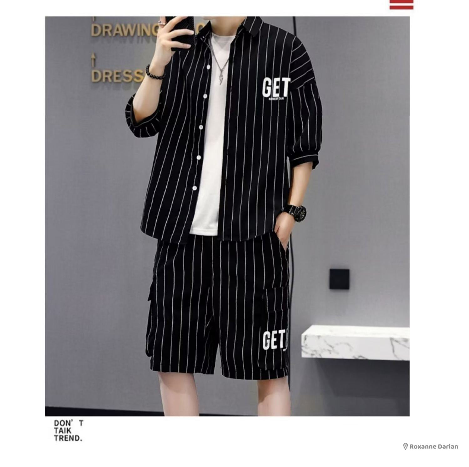 ストライプ シャツ セットアップ メンズ 春夏 2点セット 上下セット 半袖 半ズボン 短パン 春夏 スタイリッシュ ストライプシャツセットアップ メンズ スマートスタイル 春夏 ストライプ セットアップ メンズ | RoxanneDarian