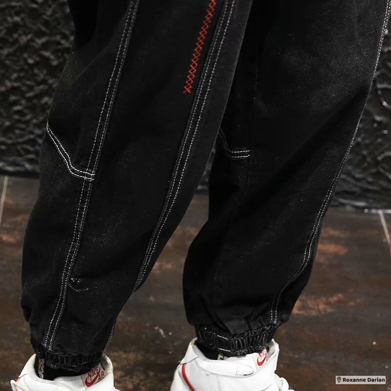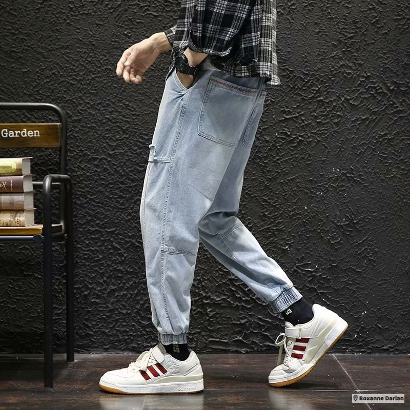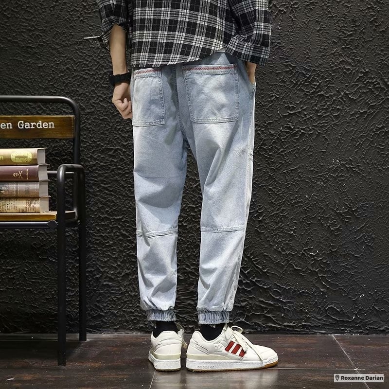 デニムパンツ メンズ ジーンズ ストレッチ フィット。男女兼用で春夏秋に活躍するゴムウエスト仕様。ヒップホップテイスト満載の一本。