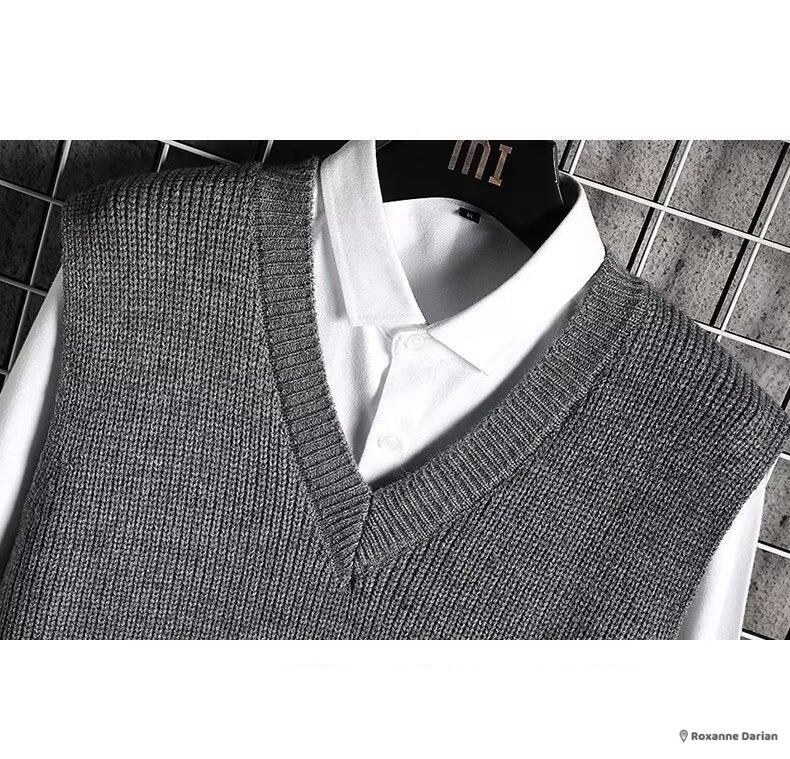 ニット ベスト メンズ 秋冬 トップス プルオーバー ゴルフウェア ビジネス 重ね着 カジュアル 通勤 リブ編み 長袖 黒 グレー M L XL 2XL