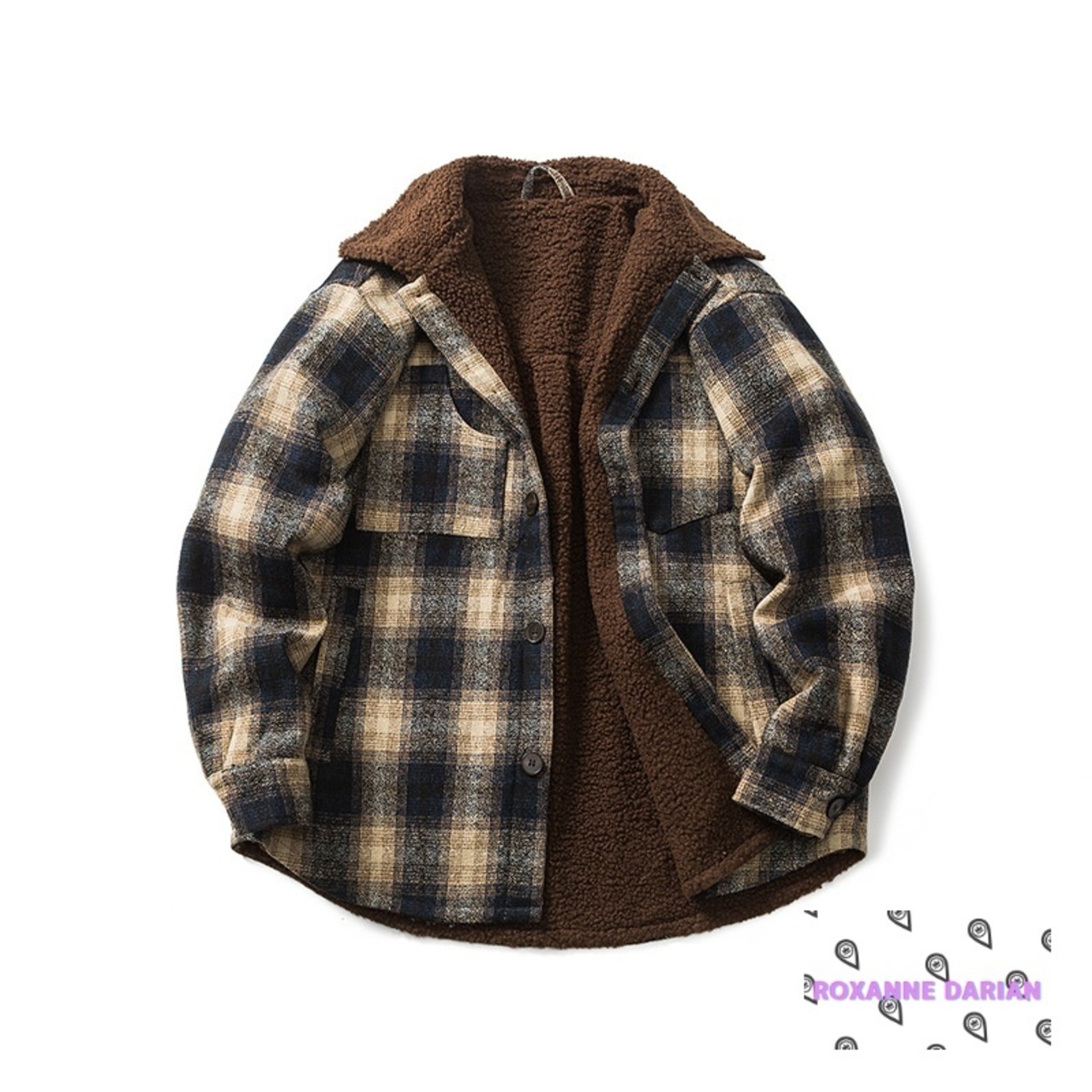 ボア 裏起毛 あったかい チェック柄 折り襟 ポケット シャツ ダウン ジャケット アウター メンズ 秋 冬 暖かいコート 秋冬アウター 折り襟シャツ ポケット付き カジュアルファッション ビジネススタイル ルーズフィット デイリーユース トレンド 快適 おしゃれ | RoxanneDarian