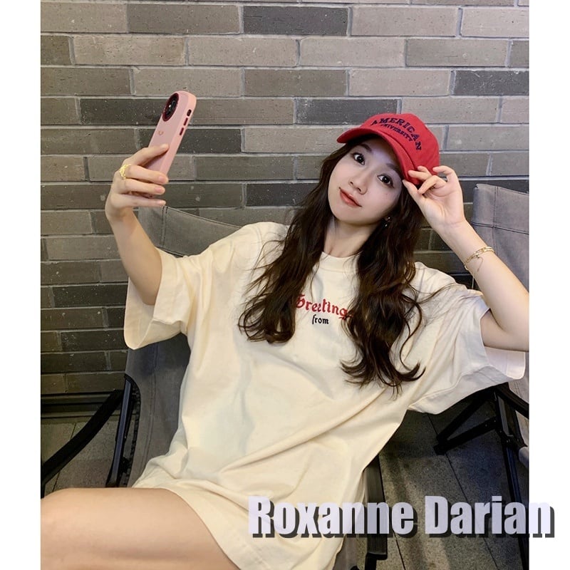 このボンジのロングTシャツは、誰でも簡単におしゃれに着こなせます。ゆるいシルエットとクルーネックが体型をカバーし、女性らしい柔らかな印象を与えます。赤文字の英字プリントが印象的で、ストリート系や韓国風のコーディネートにもぴったりです。