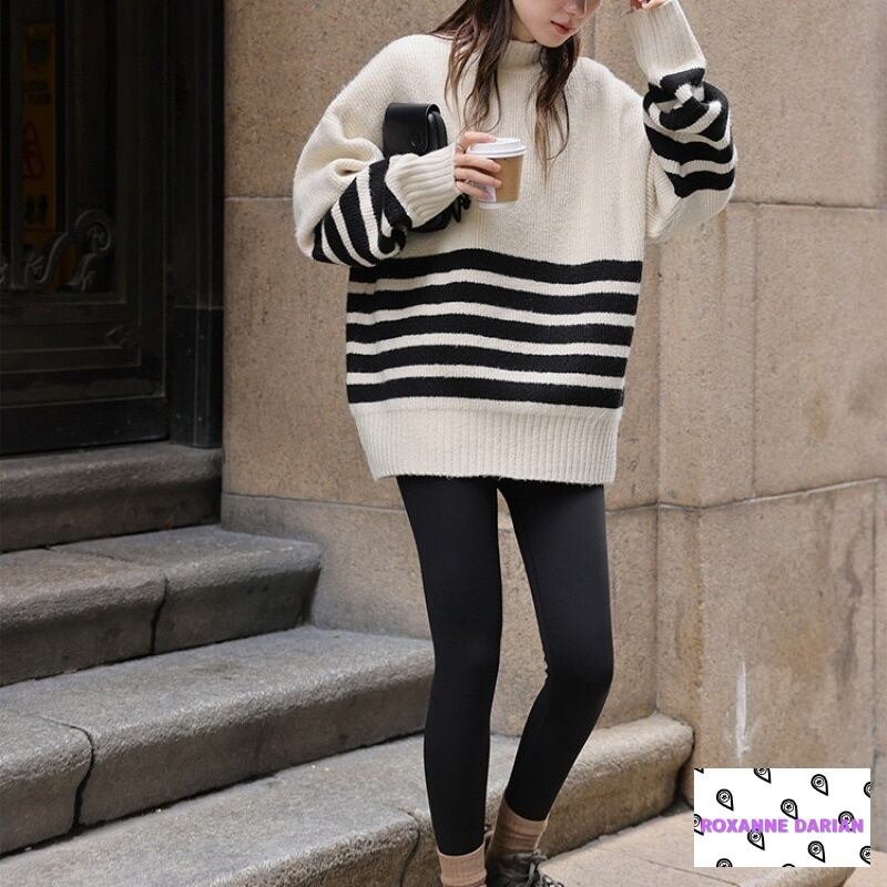 長袖ニット セーター レディース ゆったり トップス 韓国 ストライプ リブ 大人 OL 仕事 職場 快適 洗練 デザイン 高品質 秋 冬 オフィススタイル 普段使い コーディネート 多用途 シンプル きれいめ ストリートスタイル アクリル素材 デイリーユース 人気アイテム | RoxanneDarian