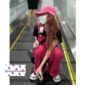 デニムサロペット レディース目を引く プリント レッド オーバーオール 垢抜け デニム カジュアル 古着ライク メンズライク ダボかわ ルーズおしゃれ