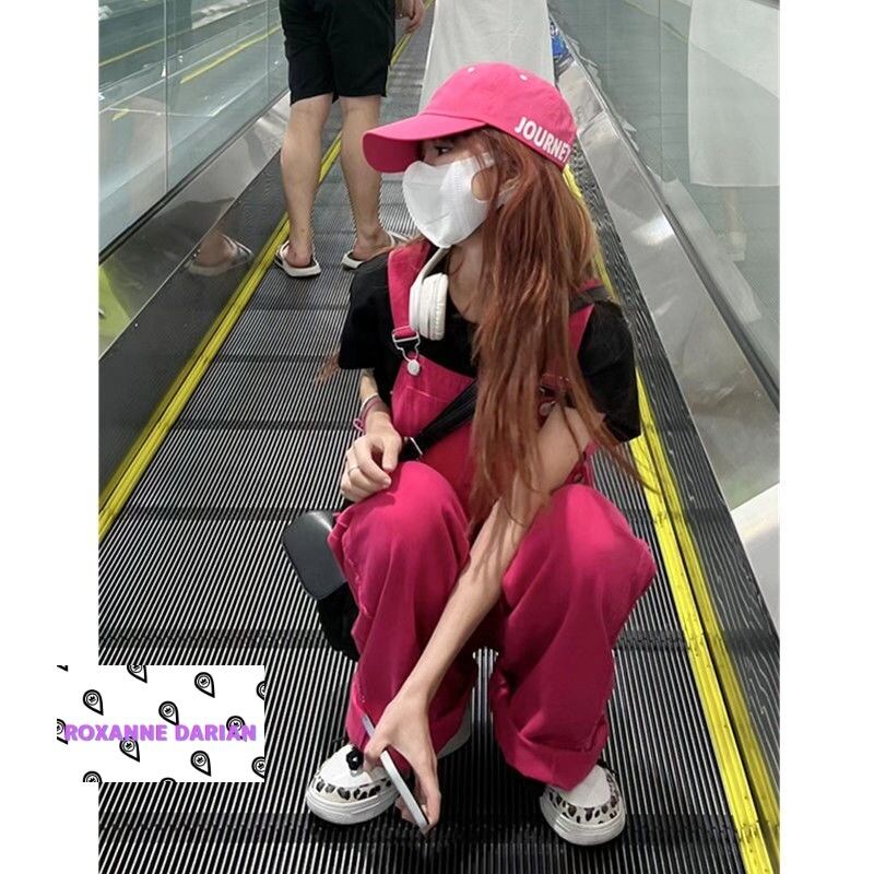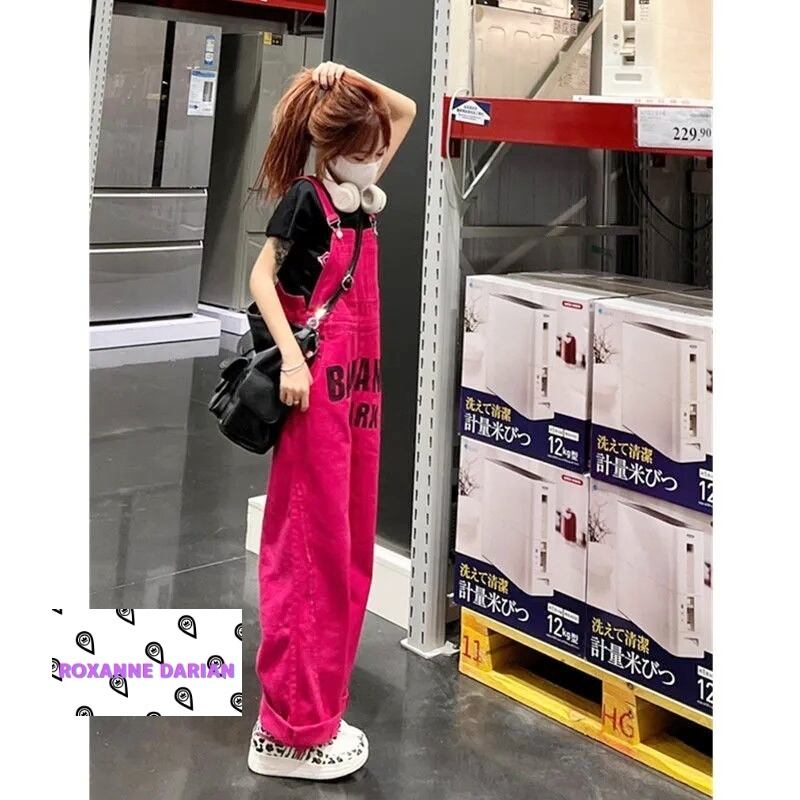 デニムサロペット レディース目を引く プリント レッド オーバーオール 垢抜け デニム カジュアル 古着ライク メンズライク ダボかわ ルーズおしゃれ デニム素材 ユニークデザイン 普段使い ファッションコーデ 多様なスタイル お出かけ 想いを込めたアイテム カジュアルコーデ 春夏秋冬 おしゃれ女子 デイリーアイテム | RoxanneDarian