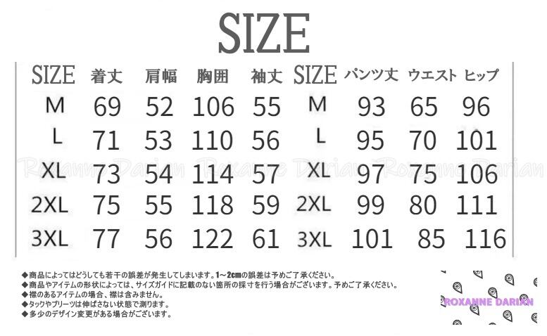 4XL 着丈:68 胸囲:116 肩幅:58 袖丈:55 パンツ丈:91 ヒップ:106