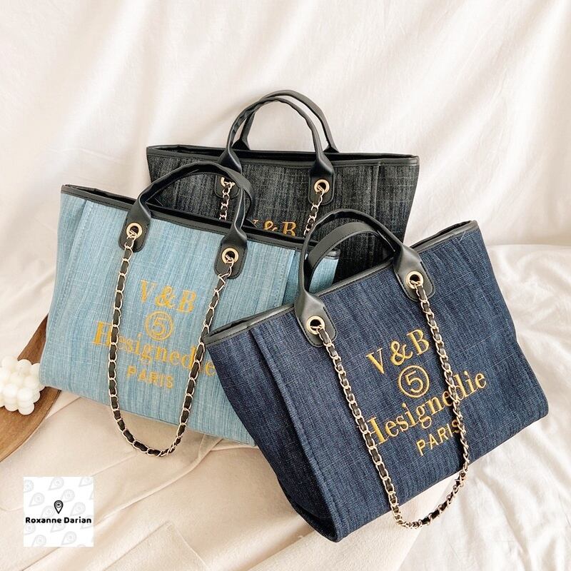 A4サイズ対応の大容量トートバッグ。ネイビー・ライトブルー・ブラックの3色展開で、季節を問わず使えるオールシーズン仕様。軽量ながらもしっかりとしたデニム素材を使用しており、耐久性とデザイン性を兼ね備えた一品です。
