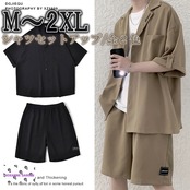 春夏のメンズファッションにおすすめなシャツセットアップ。半袖のシャツと半ズボンがセットになっています。カジュアルながらもスタイリッシュなデザインで、オシャレな着こなしを楽しむことができます。