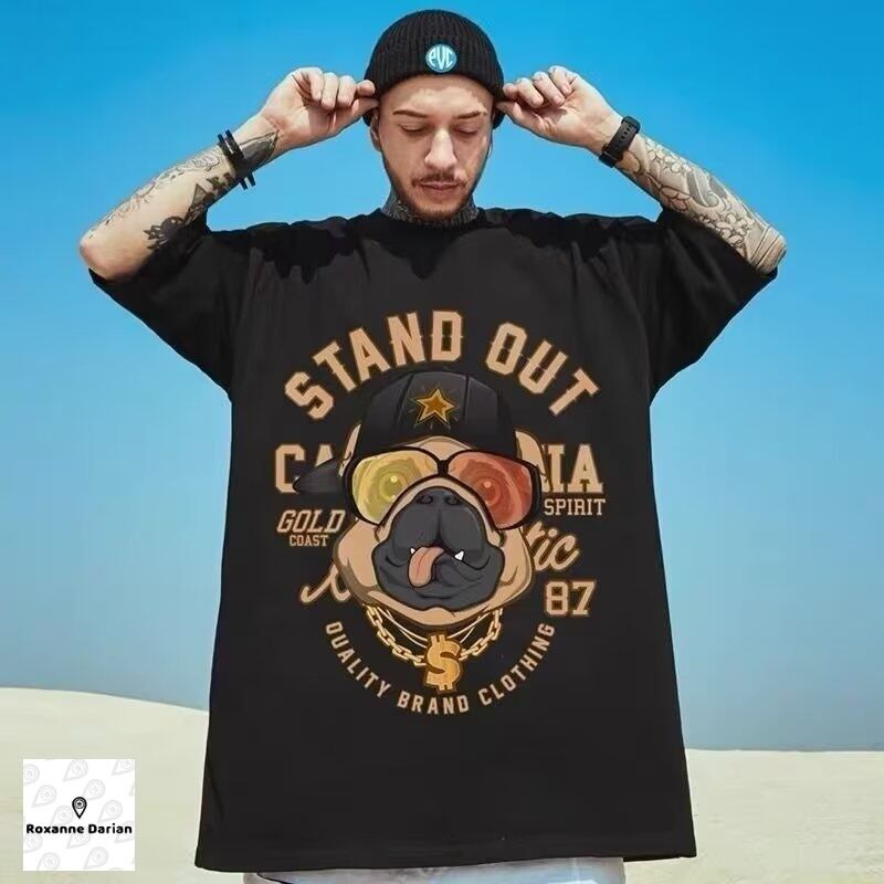 半袖 Tシャツ 速乾 五分袖 ストリート メンズ トレンド ヒップホップ オーバーサイズ ブルドッグ アメリカン ストリート おしゃれトレンド ストリートスタイル 普段使い 洗練 個性 デイリーウェア 人気のデザイン | RoxanneDarian