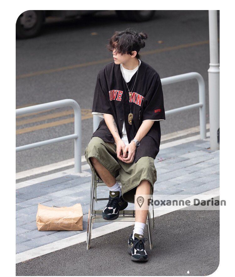 メンズTシャツ 半袖シャツ ヒップホップファッション 夏用カジュアルシャツ シャツ レトロファッション ビッグプリントシャツ 野球スタイル 古着風シャツ 快適生地 ブラックシャツ カーキ 大きいサイズ Mサイズシャツ Lサイズシャツ XLサイズシャツ 2XLサイズシャツ 3XLサイズシャツ おしゃれメンズシャツ カジュアルスタイル | RoxanneDarian