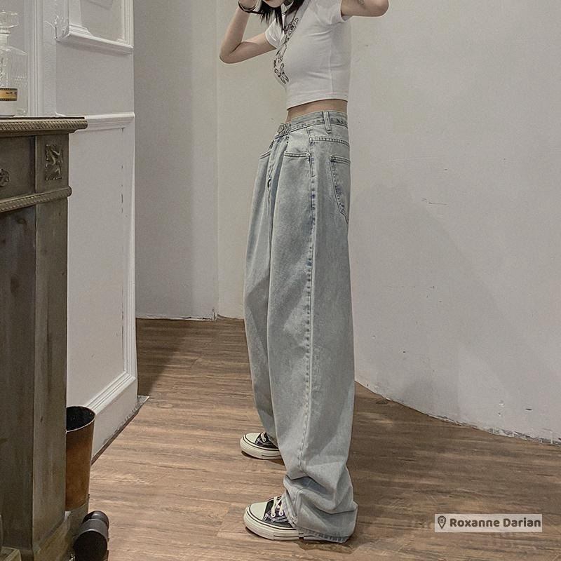 Y2Kスタイル ダボダボパンツ ライトブルー ハイウエスト ワイドレッグ ジーンズ 女性用ジーンズ ハイウエストパンツ カーゴパンツ レディース レトロファッション 秋コーデ レディース スリムジーンズ ワイドレッグパンツ ロング丈ジーンズ ドレープパンツ レディース ピンクパンツ コーデ ブルーパンツ ファッション | RoxanneDarian