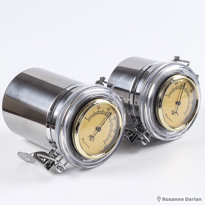 このスタイリッシュな手巻きタバコ用ジャーは、ステンレス鋼製で高品質な仕上がりです。湿度計と加湿器を備えたヒュミドールにより、葉っぱやシガーを最適な状態で保管します。2サイズ展開で、用途に合わせた選択が可能。手巻きタバコ愛好家のための便利でお洒落な保管ソリューションです。乾燥防止機能で大切な葉っぱを長持ちさせます。