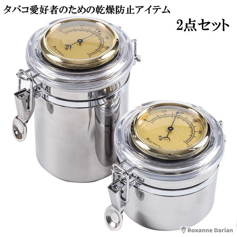 2点セット 手巻き たばこ グッズ パイプ タバコジャー 缶 ステンレス鋼 シガー ヒュミドール 湿度計 加湿器 2サイズ 乾燥防止 葉っぱ 収納 便利 お洒落 タバコ 愛好家 アイテム コンパクト パイプ収納 ポータブル タバコジャー タバコ ケース ステンレス 湿度管理 タバコジャー プレミアム 手巻きグッズ 長持ち タバコ 保管
