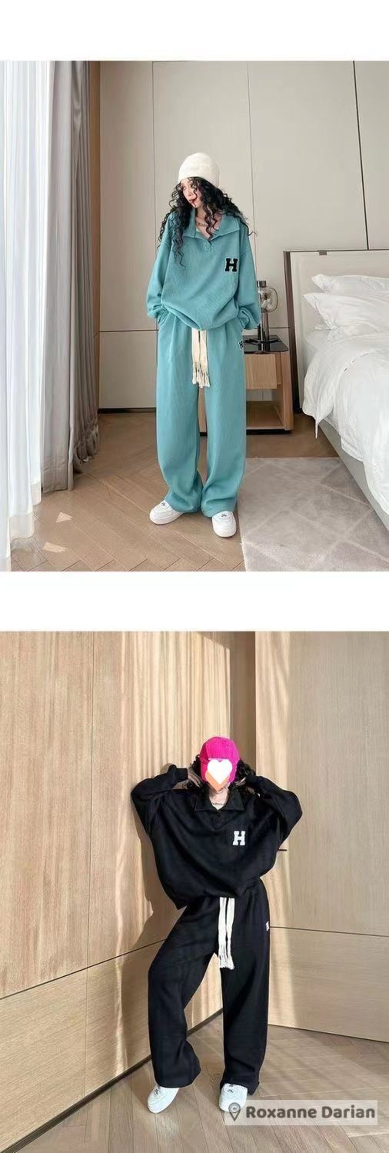 レディース セットアップ 上下セット 襟付き プルオーバー スウェット パンツ ロゴ オーバーサイズ 大きいサイズ 春秋冬 ストリートファッション 黒 3XL 4XL 大きいサイズ 春 秋 冬 10代 20代 女性 デート お出かけ 女子 大人 韓国ファッション | RoxanneDarian