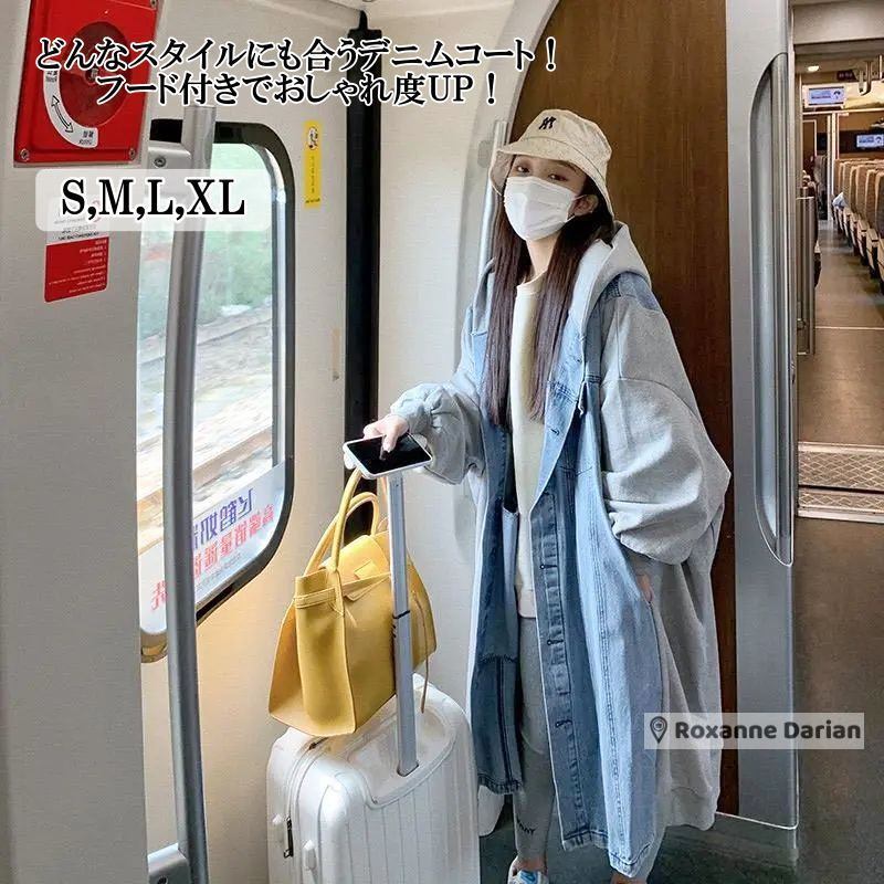 デニムコート レディース フード付きデニムコート デニムジャケット 女性用 ロングコート 春 デニムアウター 秋 カジュアル コート ゆったり デザイン ジャケット 長袖 デニム 上着 春秋にぴったりのデニムロングコート フード付きでカジュアル感をプラス ゆったりとしたデザインで快適な着心地を | RoxanneDarian