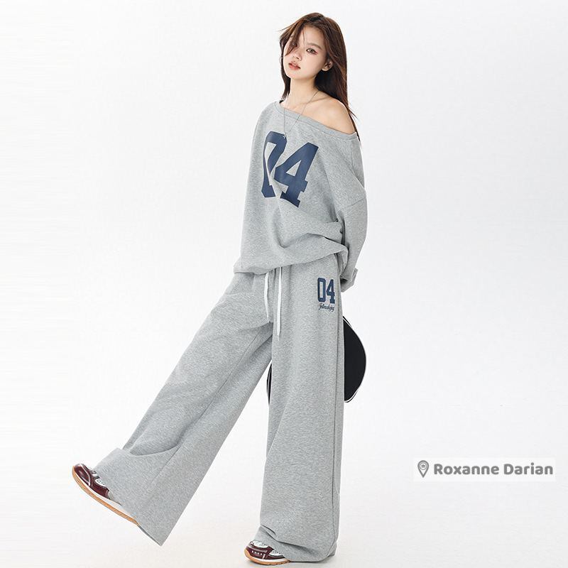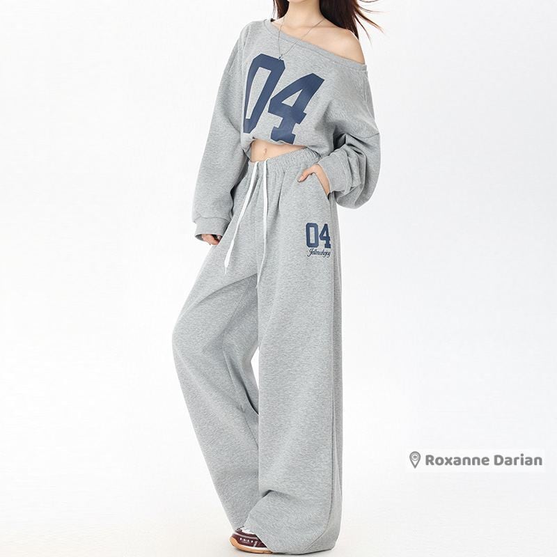 レディース セットアップ 上下セットナンバーオフショルダーオーバーサイズフィットスウェット プルオーバー スウェット パンツ ロゴ オーバーサイズ 大きいサイズ 春秋冬 ストリートファッション S M L XL 大きいサイズ 春 秋 冬 10代 20代 女性 デート お出かけ 女子 大人 韓国ファッション | RoxanneDarian