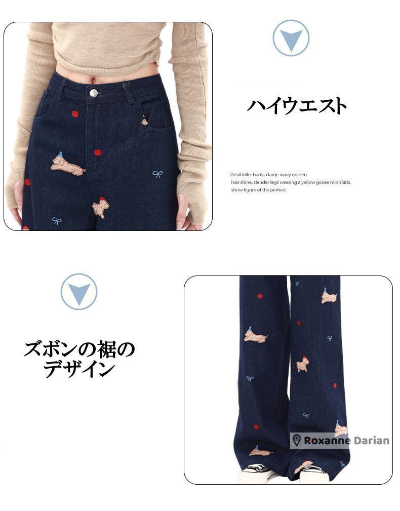 パンツ 犬ちゃん刺しゅうパンツ レディース Y2Kスタイル ダボダボパンツ ハイウエスト ワイドレッグ ジーンズ 女性用ジーンズ ハイウエストパンツ カーゴパンツ レディース レトロファッション 秋コーデ レディース スリムジーンズ ワイドレッグパンツ ロング丈ジーンズ ドレープパンツ レディース ピンクパンツ コーデ ブルーパンツ ファッション | RoxanneDarian