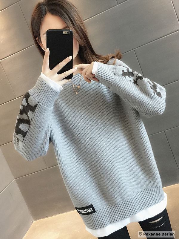 ドッキングニット デニムシャツ セーター 重ね着風 レオパード柄 豹柄 秋冬 大人かわいい レディース シャツ ニット パッチワーク レイヤード セーター 韓国 女性 厚手 ニット 上着 新作 ゆったり モデル 森ガールファッション | RoxanneDarian
