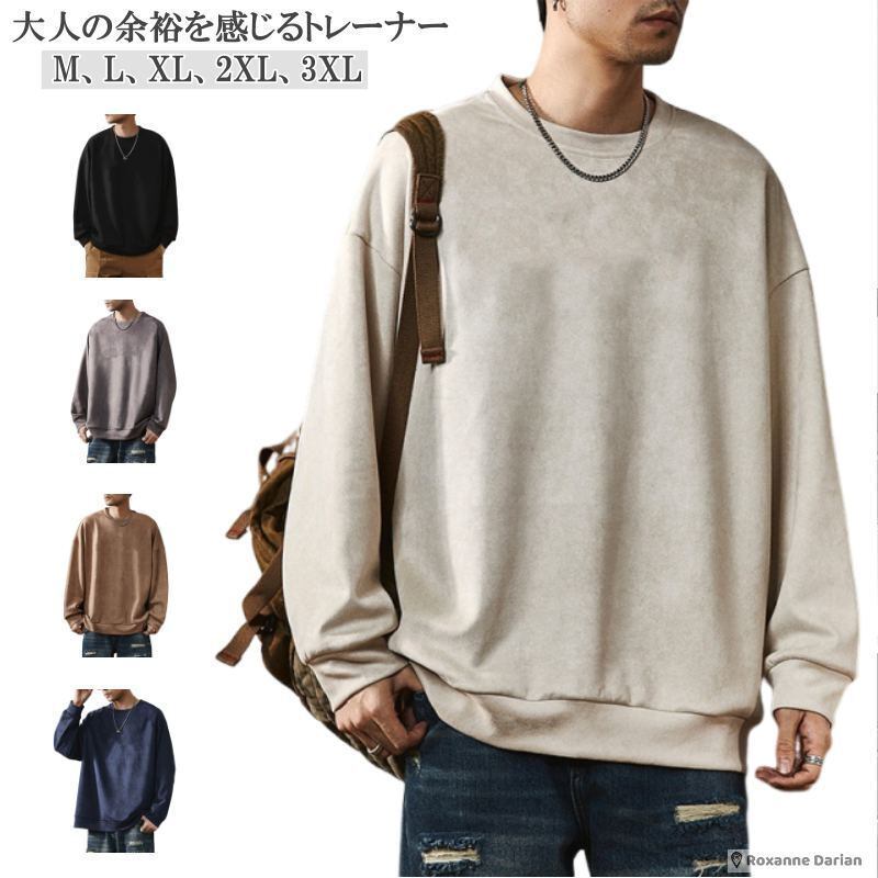 メンズ トレーナー 秋服 スエード ビッグシルエット 無地 大きいサイズ レトロ スウェット プルオーバー カジュアル クールネック 冬服 春服 トップス M L XL 2XL 3XL ブラック ブラウン ブルー グレー アプリコット おしゃれ 高級感 ゆったり トレンド シンプル 秋冬 カラー 豊富 オフィスカジュアル 快適 スタイル
