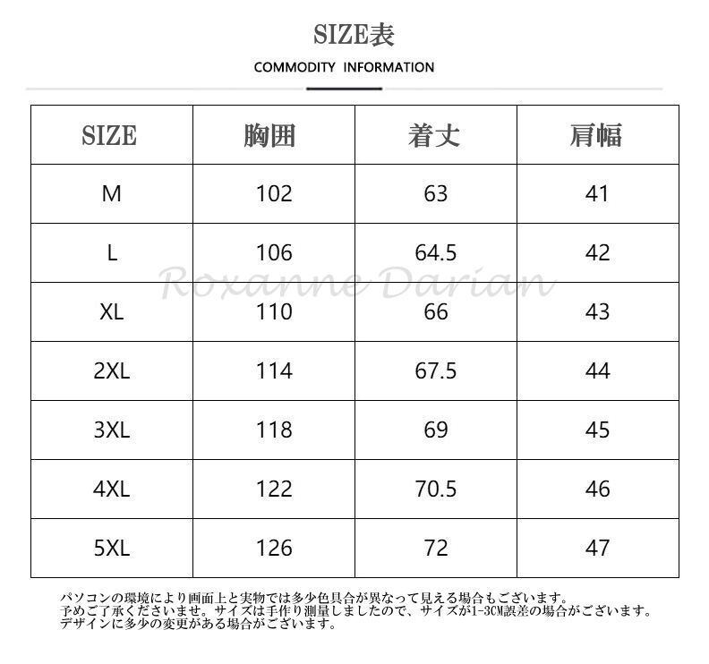 サイズ M、L、XL、XXL、3XL、4XL、5XL